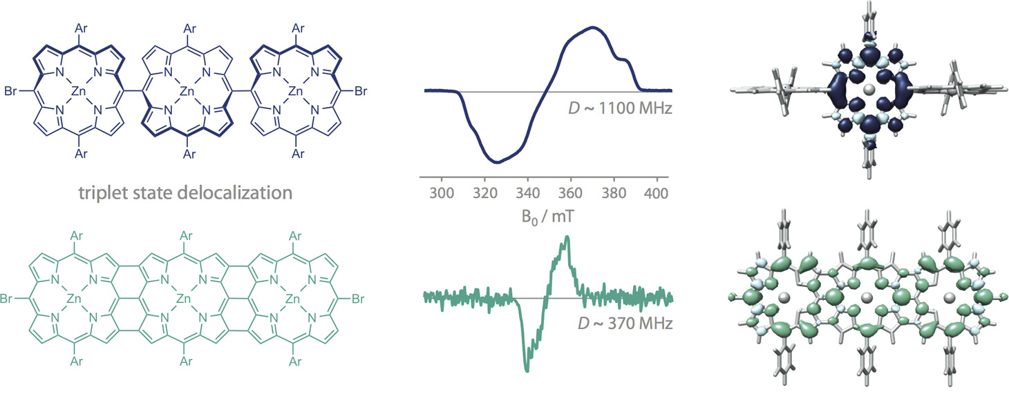 Excitation wavelength-dependent EPR study on the influence of the conformation of multiporphyrin arrays on triplet state delocalization