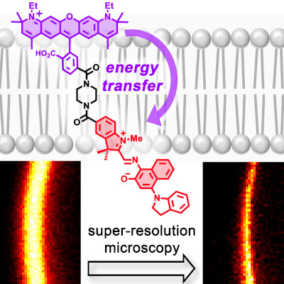 Super-resolution RESOLFT microscopy of lipid bilayers using a fluorophore-switch dyad