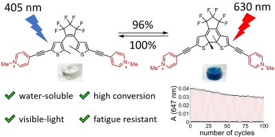 How do donor and acceptor substituents change the photophysical and photochemical behavior of dithienylethenes? The search for a water-soluble visible-light photoswitch